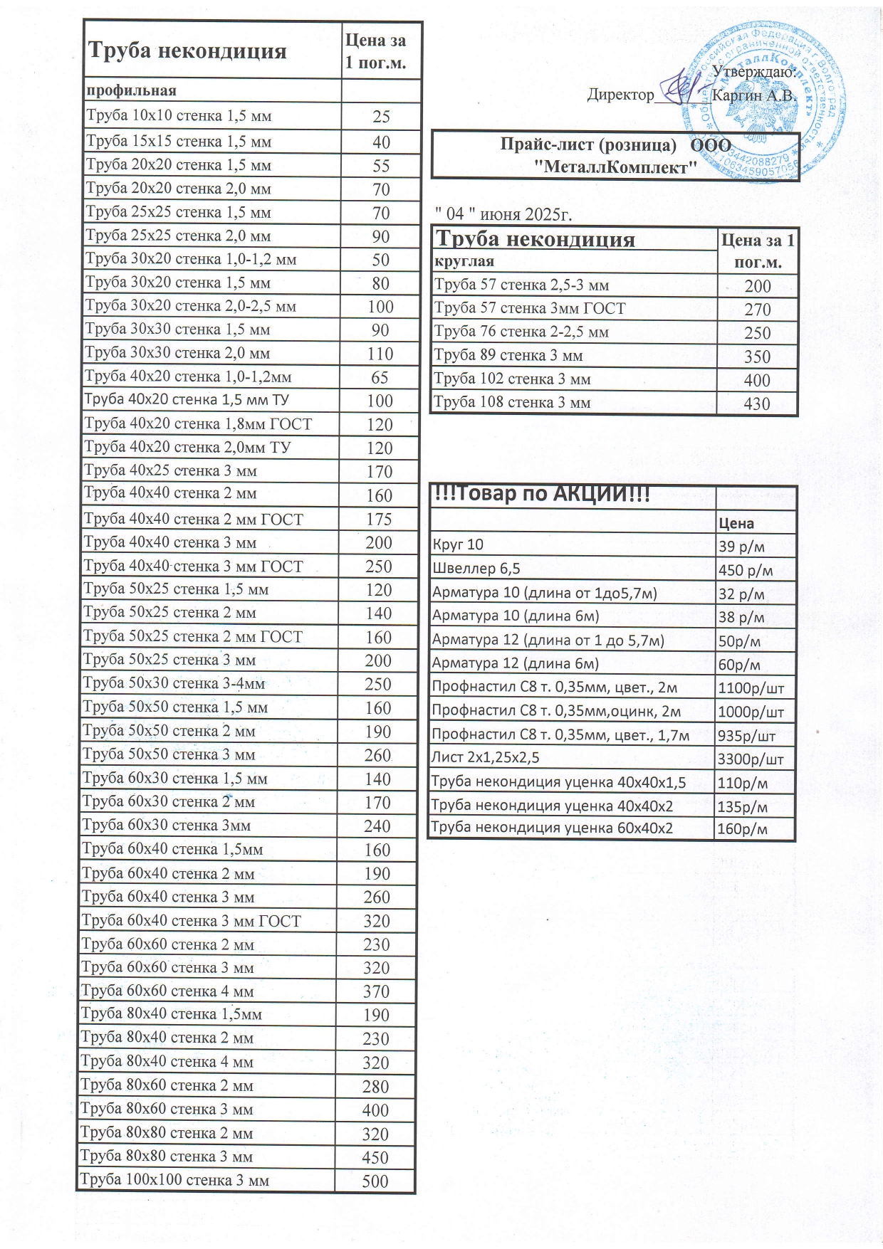Компания «МеталлКомплект» публикует актуальные данные: прайс-лист содержит цену на арматуру, листовой прокат и профильную трубу, что делает поиск максимально удобным. Актуальный прайс металлопроката и прозрачная подача цен позволяют быстро сориентироваться и выбрать нужную продукцию.
